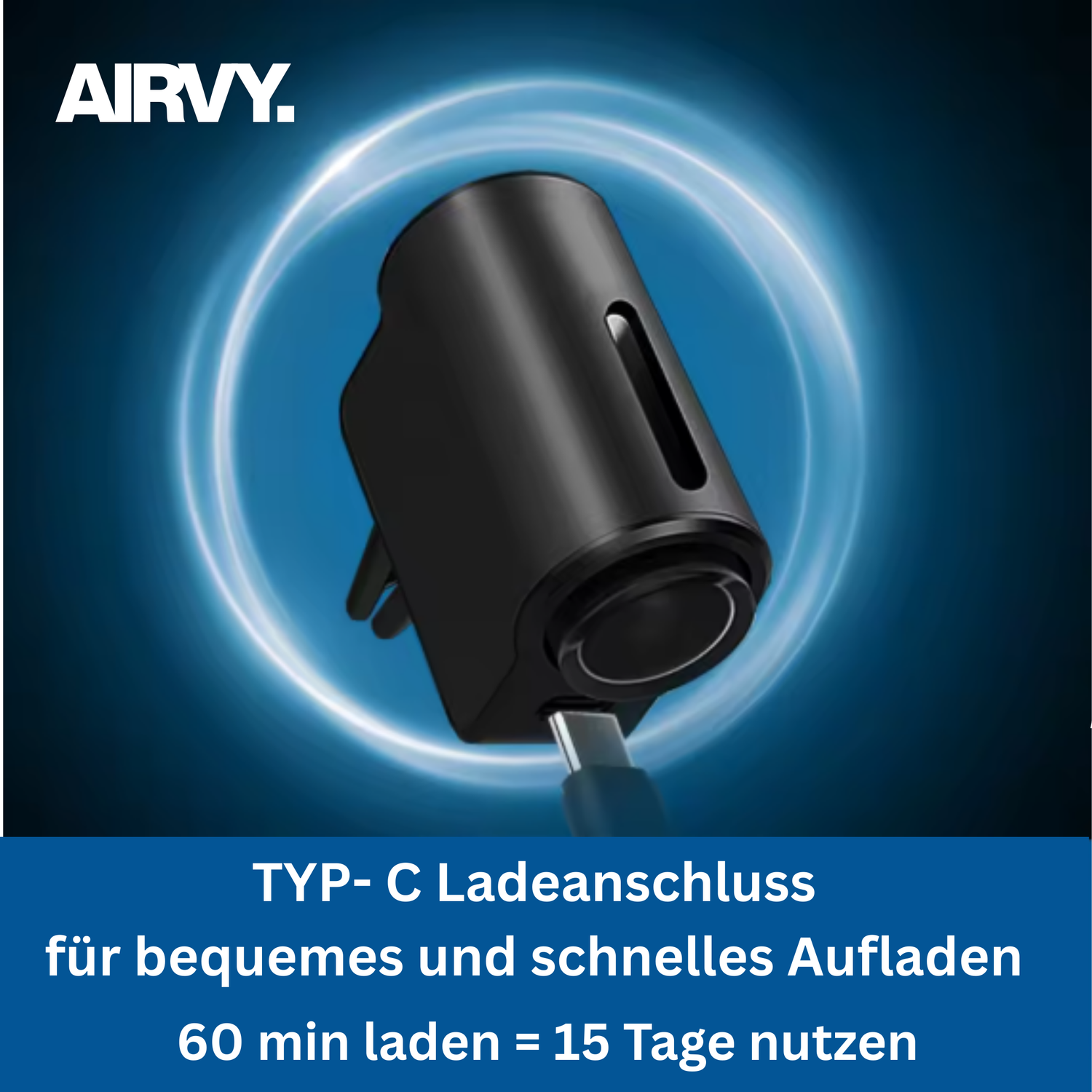 Der Airvy Diffuser kommt mit einem praktischen USB-C-Kabel, sodass du ihn überall bequem laden kannst – im Auto, am Laptop oder an der Powerbank. Schon 60 Minuten Ladezeit reichen für beeindruckende bis zu 15 Tage Betrieb. Kein ständiges Nachladen, kein Kabelsalat. Einfach kurz aufladen und wochenlang entspannte Düfte geniessen. Perfekt für alle, die maximale Leistung mit minimalem Aufwand wollen.